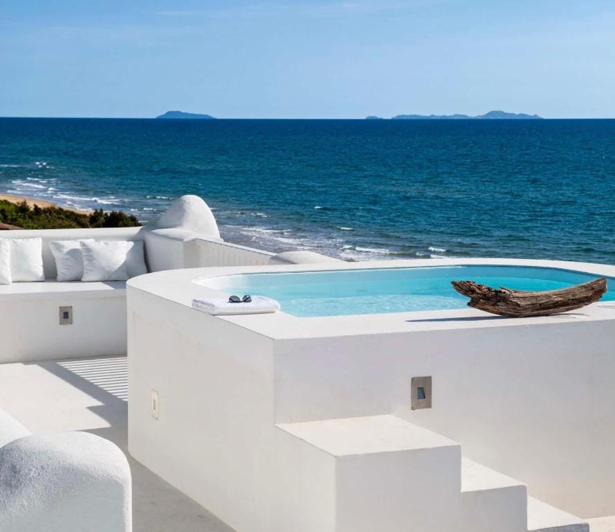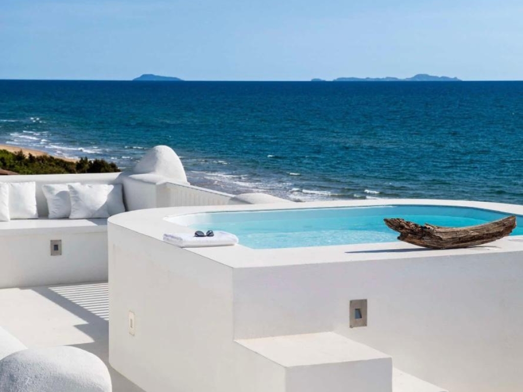 Villa di design con accesso privato al mare. Si sviluppa su tre livelli per un totale di 500mq. Il piano terra composto da una grande zona giorno open space, terrazza panoramica. Una camera matrimoniale con bagno en suite e una cucina di design. Il piano superiore ospita tre camere da letto, una con bagno privato e due condiviso, e suite padronale con acceso diretto ad una terrazza panoramica e una seconda terrazza con zona relax e bagno esterno. Completa la villa una magnifica terrazza sul tetto con vasca idromassaggio panoramica. Al di sotto della villa troviamo un piano seminterrato con due camere indipendenti con bagno. Circondano la villa 4000 mq di giardino con solarium in legno e acceso privato alla spiaggia.